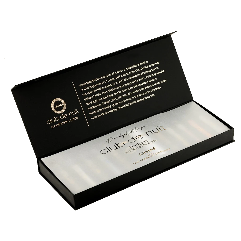 An invitation to explore the many facets of an icon. The CLUB DE NUIT DISCOVERY SET is a curated wardrobe of fragrance, offering a complete olfactory journey through the most celebrated series in the Armaf collection. Each 10ml flacon is a doorway to a different world, designed for the visionary who refuses to be defined by a single scent, but rather chooses their aura to match the moment.